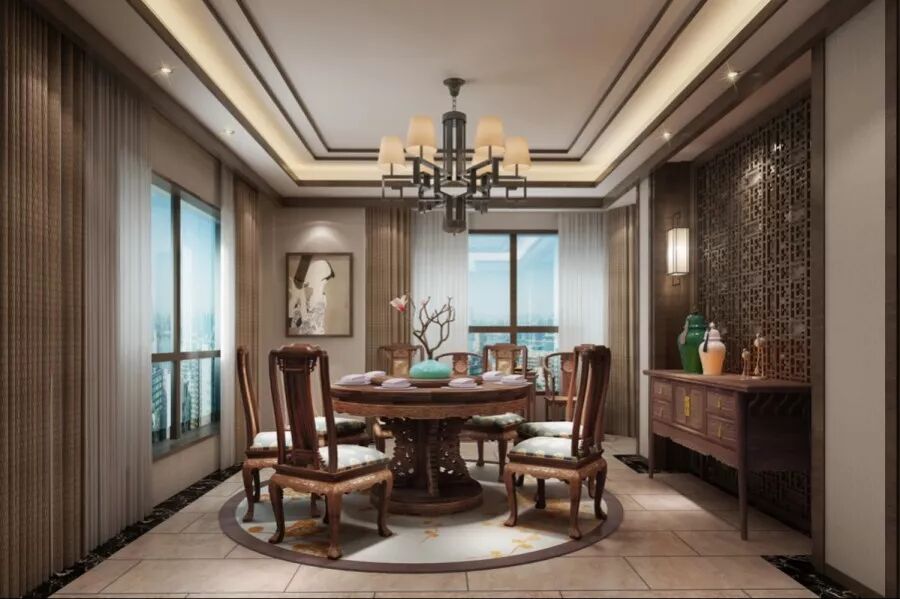 长餐桌在西餐中运用较广,因为刀叉盘碟的摆放相对灵活,但在中式家庭中,长餐桌的使用也不少,长餐桌对用餐环境还有填补空间的巧妙作用。