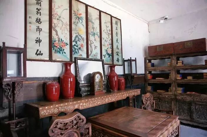 现在很多饭店、茶庄都喜欢用一些老物件,像八仙桌、老方凳、老书案、老砚台,旧水缸,老字画等。