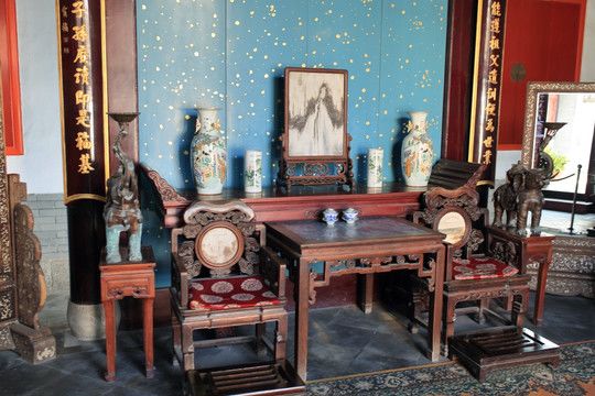 厅堂装饰不论典雅、简单,或者粗糙,只要空间不是特别逼仄,摆上一张八仙桌,两侧放两把椅子,就会产生非常稳定的感觉,如一位大儒,稳定平和。