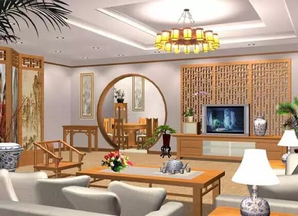 客厅红木家具的配饰一般采用绿植,中国结,字画,中式灯饰,屏风隔断,营造出一种典雅闲适的氛围。