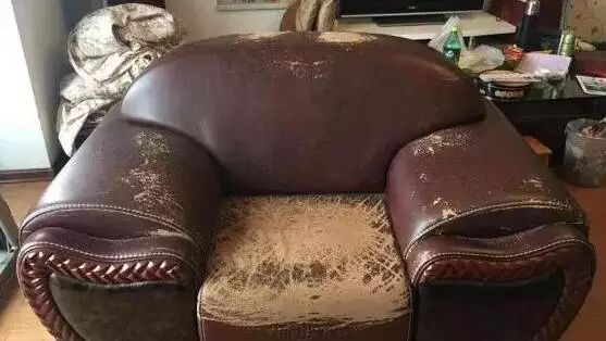 看完以上几组照片,这是皮质沙发最后必然会经历的一个结果,或许正在考虑购买皮质沙发的您又得增添了几分思考。