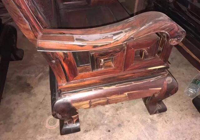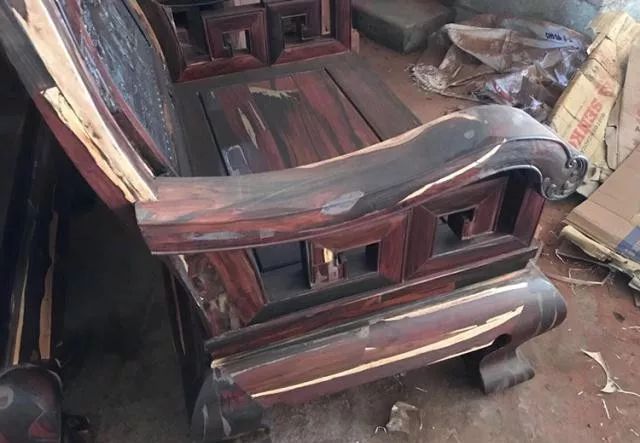 红木商人不听信朋友们的好言相劝,依然将这套沙发从越南发到中国。一个星期这套沙发就到了中国,到了中国,红木商人马上叫车将这套沙发拉到自己的红木加工厂加工,正所谓狐狸的尾巴迟早会露出来,工厂里的木工将这套沙发一刮磨,红木商人当场傻眼。
