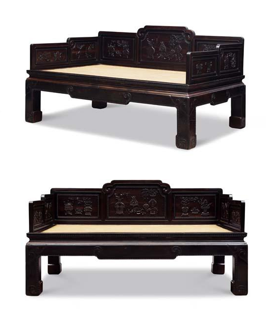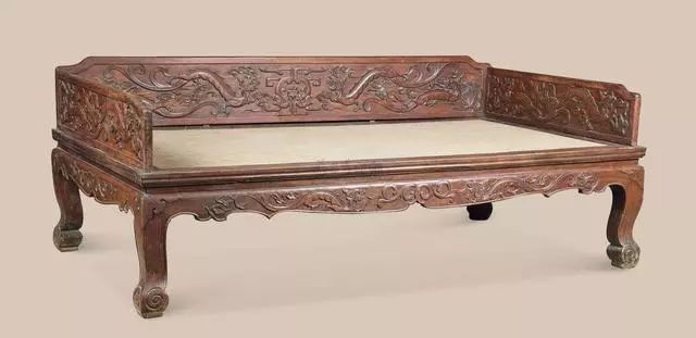 罗汉床的差别主要表现在围子的做法上,最简捷朴质的只有三块光素的整板,正中一块稍高,或有的整板加一些浮雕花纹。