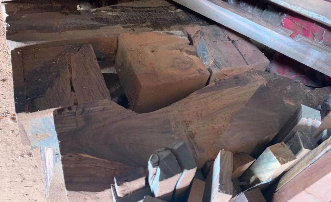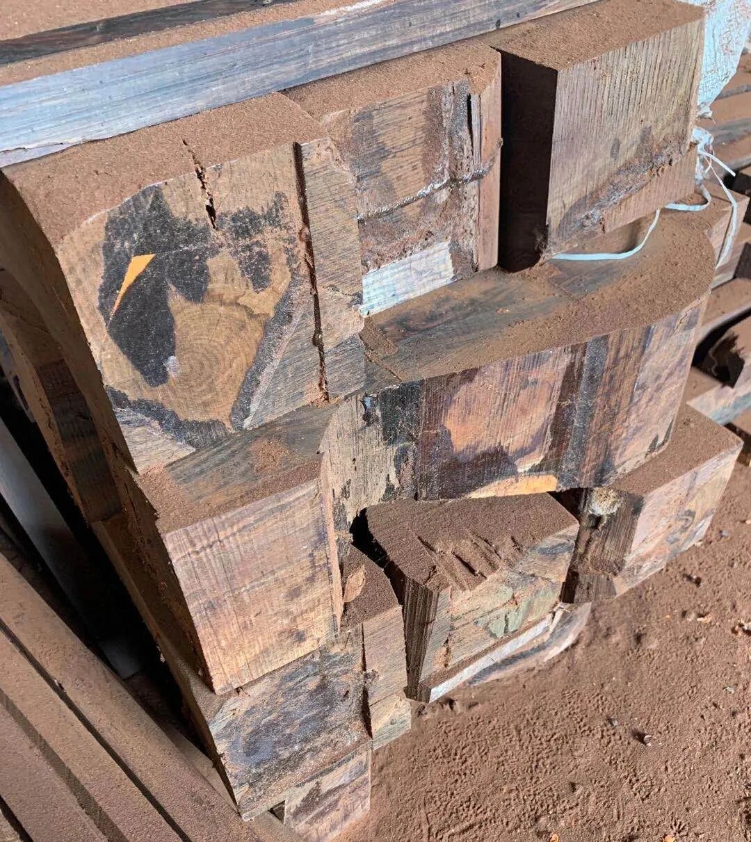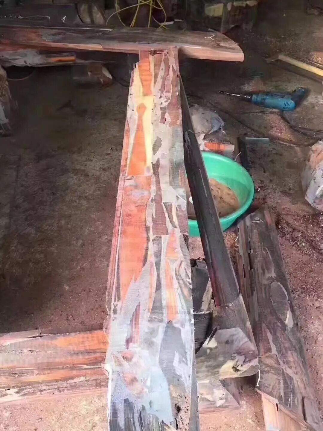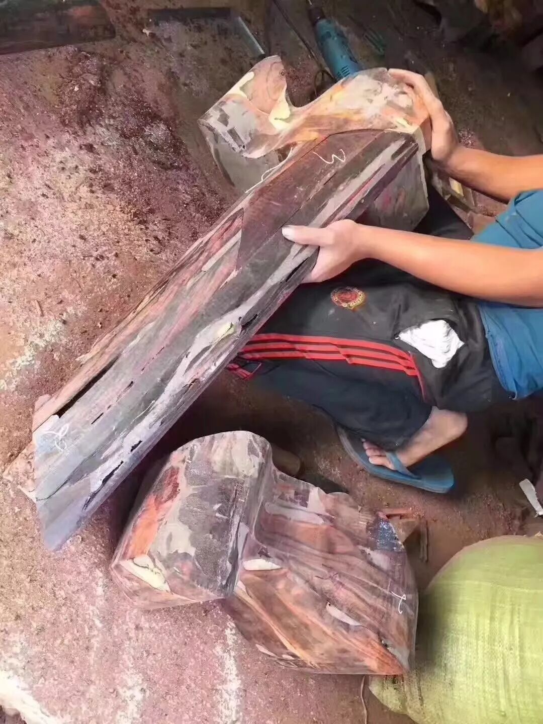 在一个大红酸枝家具厂车间里,再次看到了这样的大红酸枝腿料: