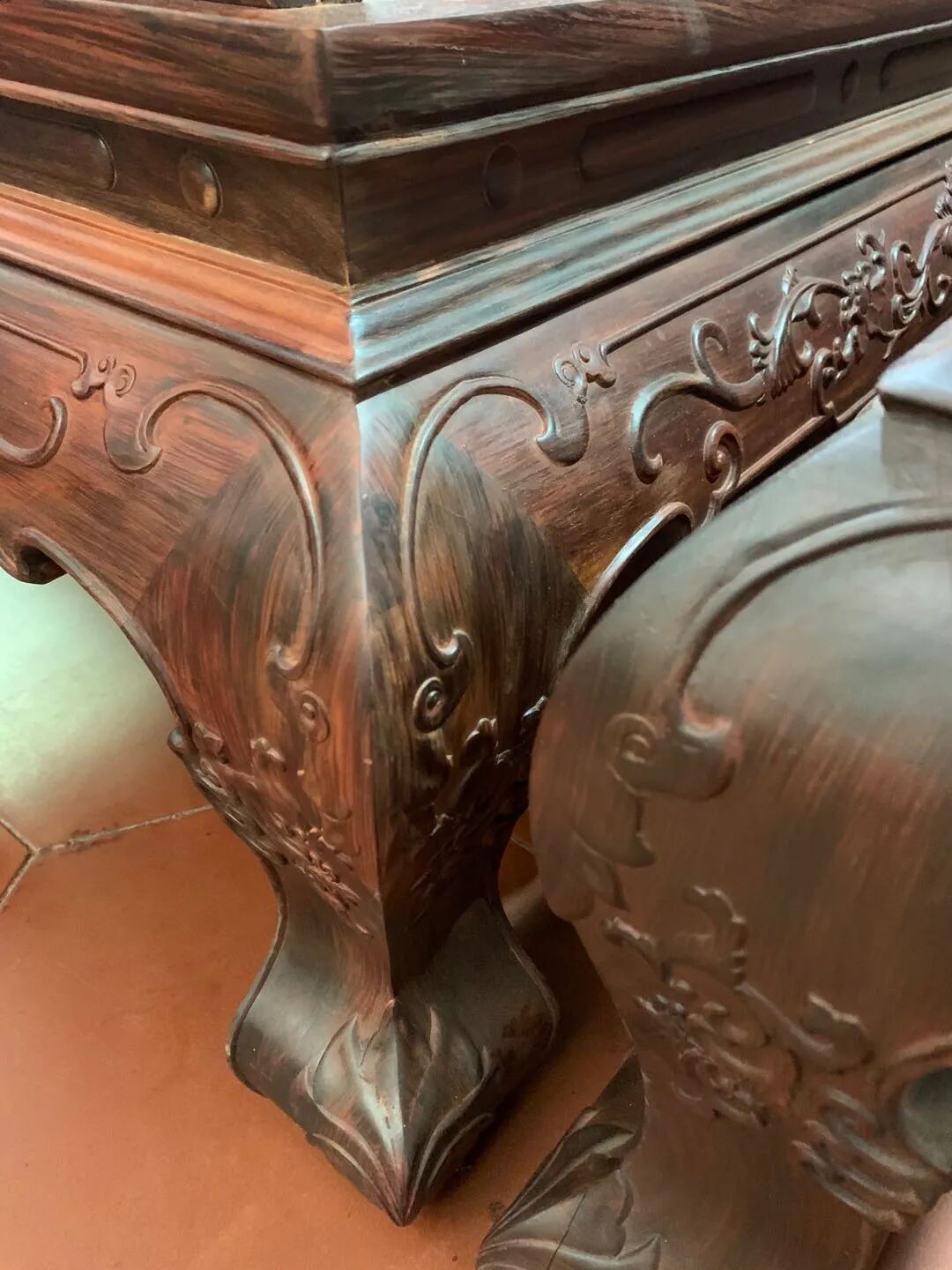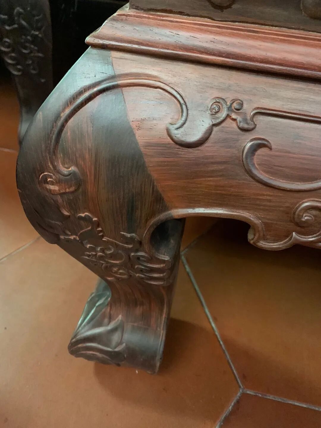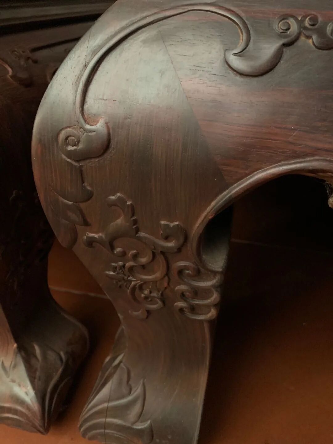 比如说下面这件灌了水泥的红木家具,连店门都没出就已经缺胳膊掉腿了: