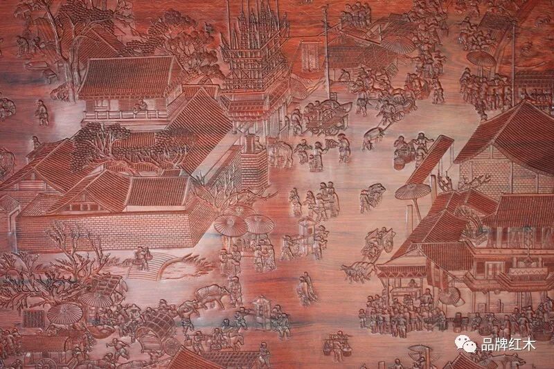 大多的古典屏风都是把很多的国画直接搬上了屏芯,运用传统的雕刻技艺,让雕刻艺术和国画艺术实现了完美的结合。《清明上河图》是我国十大传世名画之一,它是北宋画家张择端仅见的存世精品,现在已经成为很多的屏风的雕饰内容,看惯了传统画卷上的《清明上河图》再去欣赏屏风上雕饰的图画,亦是别有一番艺术魅力。