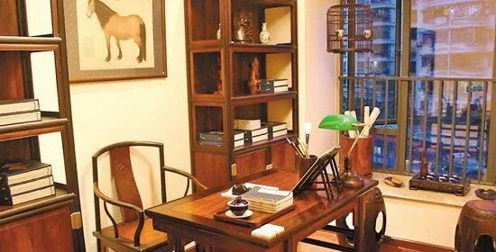 它在家中是最高雅的场所,古典的书房氛围内,洋溢着自然的木香与人文的墨香,陈设布置处处透露着文人气质。