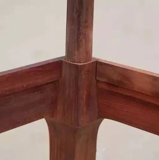 就比如下图这个腿部和上边圆形立柱系一木连做,腿足下边花牙是一木连做的皇宫椅,拆开后,您仔细看下图连接处,就都明白了。