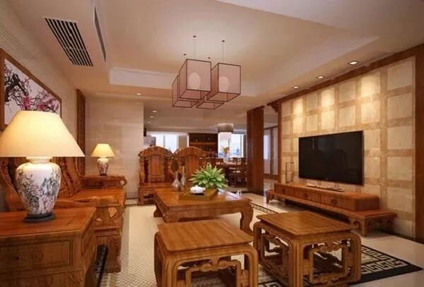 在浅色系中,花梨木家具的色彩自然呈现华贵气质,很容易与室内色彩相搭配。一种典型的高雅装饰风格便是以乳白色墙面配黄色地板,深色花梨木沙发,茶几上可放置一盆红色的鲜花盆景,墙边放一个跟沙发配套的花梨木装饰橱。其自然散发的淡雅光泽令人赏心悦目,如能适当地用吊灯和射灯来突出,更会彰显尊荣。