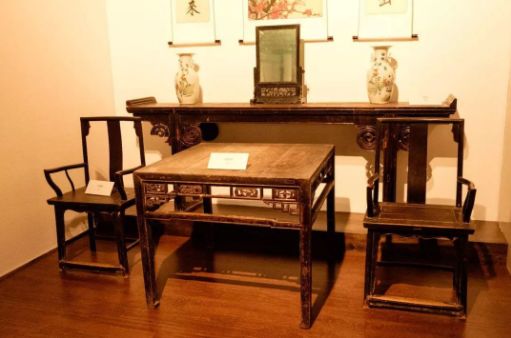 从典型的大户人家的居室陈设格局来看,正厅中堂一般摆置一张长条案(平头、翘头或架几案),条案前置放一张四仙方桌或八仙方桌,左右两边配扶手椅或太师椅。
