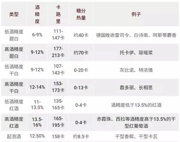 酒精里的碳水化合物的含量几乎是糖的2倍。因此,葡萄酒里的酒精比糖的热量更高。有些情况下,微甜的低酒精度葡萄酒比干型高酒精度葡萄酒的卡路里含量更低。