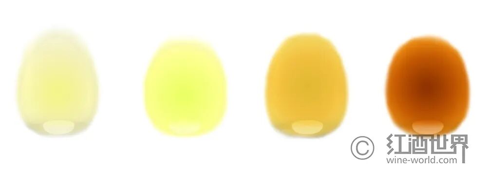 白葡萄酒陈年后的酒液颜色变化