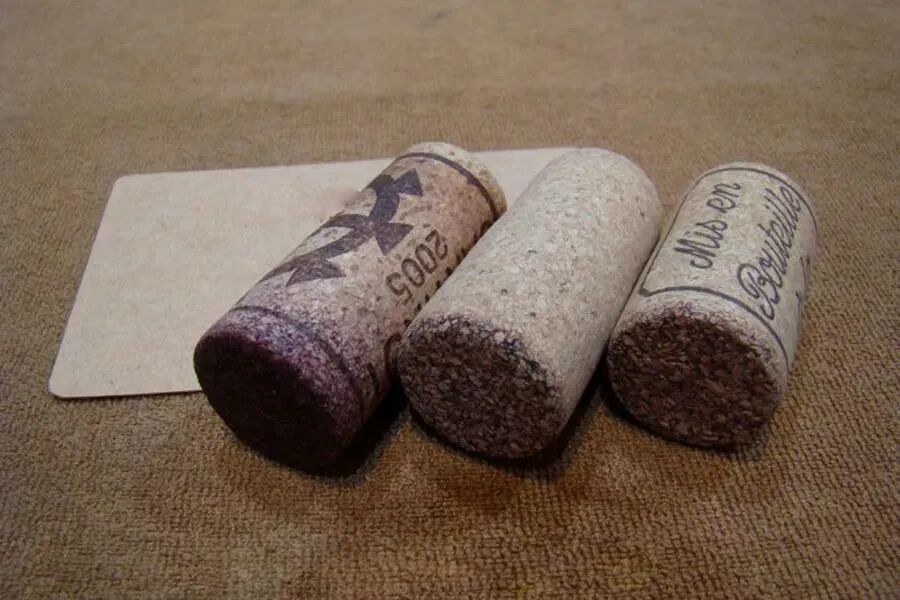 如果是用碎木组合起来的软木塞,一般是普通的葡萄酒,买来后要尽快喝掉的(因为碎木软木塞的气孔更多更大,葡萄酒容易氧化)。还有一种是细末粘合起来的软木塞,这种软木塞气孔少,密封性很强,一般用于普通和中档的葡萄酒。