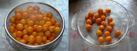 3.把金桔捞出来控干水分,在金桔表面用牙签扎眼。