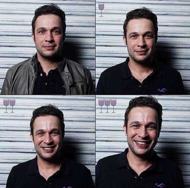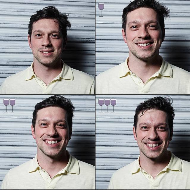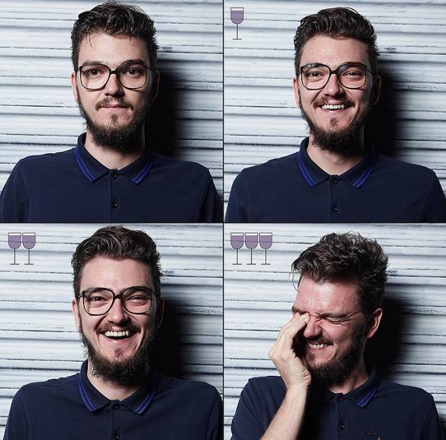 一位来自巴西的摄影师Marcos Alberti拍摄了朋友们在喝下三杯酒后的一组照片,记录了喝酒后朋友们发生的变化。