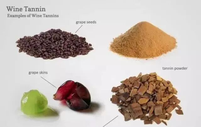 单宁是很容易理解和感知的一样东西,它是一种来自葡萄皮、梗、籽和橡木中的一种多酚。由于白葡萄酒是用葡萄汁发酵的,因此几乎不含单宁。在口腔中,它会带来干涩感,让人感觉嘴里被铺上一层膜一般。葡萄酒中单宁的质地也有优劣,处理得好的单宁质地顺滑、细腻或坚实,不好的则粗糙、扎口或疏松。