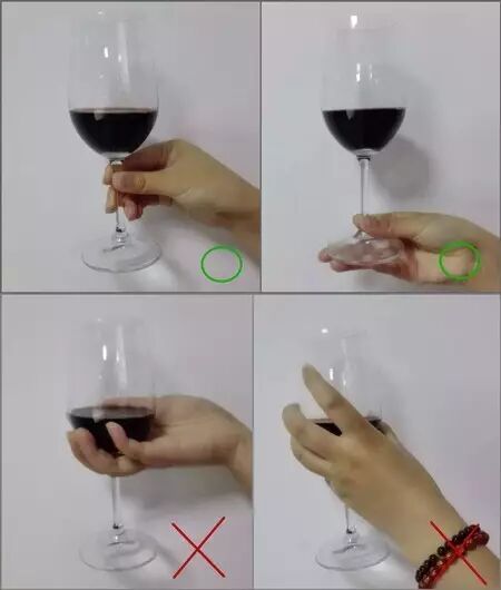 前两种持杯方法都是正确的,酒杯在你手里都能够控制自如,随心所欲。手的温度也不会影响到红酒。