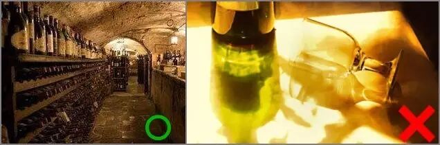 让葡萄酒长时间处于阳光直射、高温之下是非常错误的。如果你真得那么做了,那你的酒应该已经坏掉了。葡萄酒暴露在高温、高光环境下,会引起颜色改变、香气减淡,酒精挥发等问题,严重的甚至会爆瓶,相当的危险。
