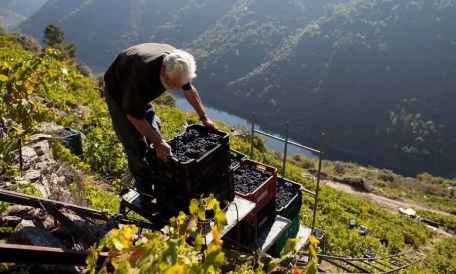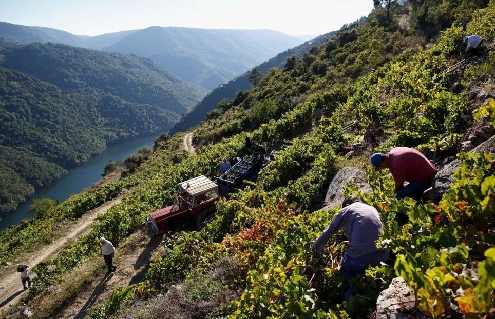 4. 葡萄可以选择手工采摘或机器采摘。在较为陡峭的葡萄园里,只能选择手工采摘。手工采摘葡萄后,用绳索把葡萄运到山脚下,再把它们集中倒进装载的车子里。