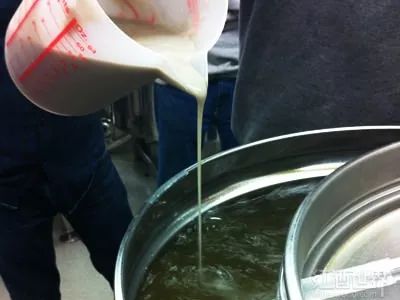 29. 下面是白葡萄酒发酵结束后,发酵罐中残留的物质,其中有死酵母的细胞。这部分物质就是“酒泥”,但初步沉淀下来的叫粗酒泥。部分风味简单的白葡萄酒,可以通过酒泥接触获得更多的酵母风味。