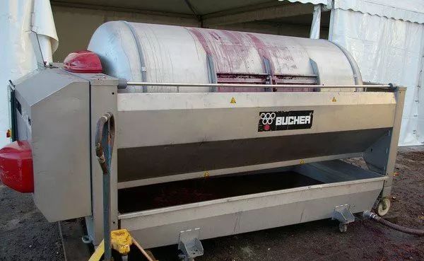27. 这种叫囊式压缩机,部分红葡萄酒和几乎所有的白葡萄酒时都可以使用这个机器。在压缩机的气囊里灌满空气,利用气压均匀而温和地对葡萄渣滓进行压榨。气囊内气压的强度会逐渐加大,但酿酒师需要把握到强度,为了避免萃取出苦味。