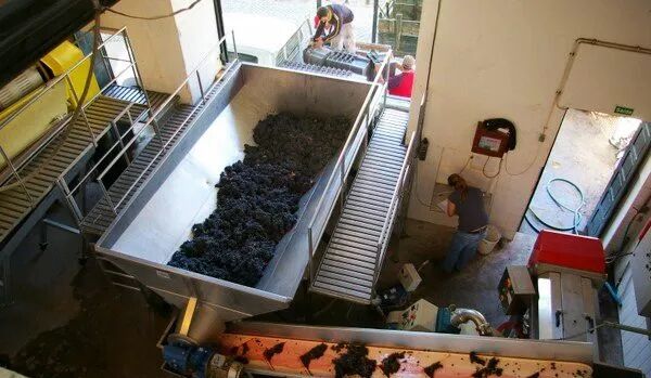 15. 葡萄去梗后,会经由传送带传送到贮存容器,然后再被传送到发酵器皿中。