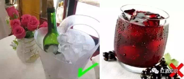 错:往葡萄酒内加冰。加冰也就相当于加了水在酒里面,这样会冲淡葡萄酒的香味和滋味,严重影响您品尝、欣赏红葡萄酒。