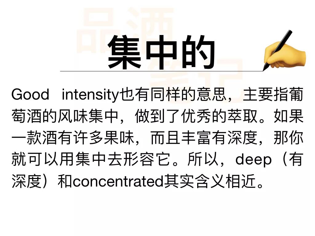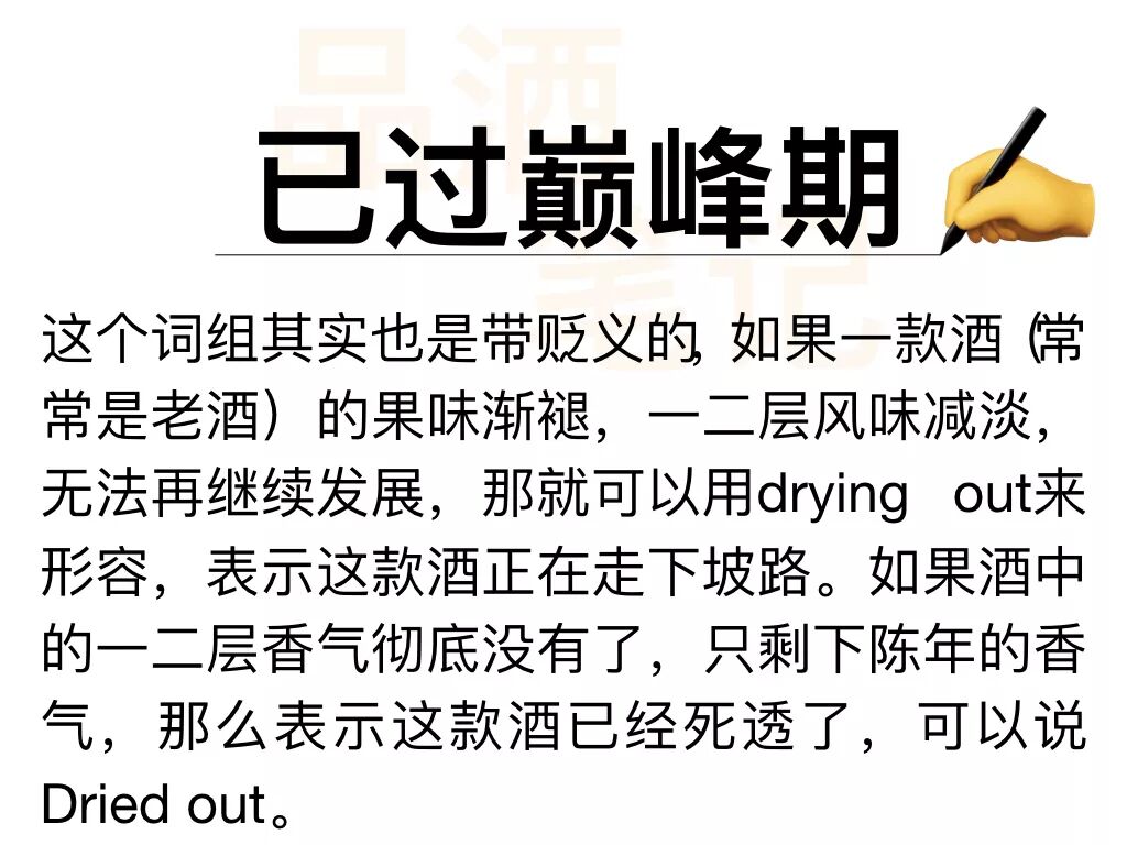 所以今天,在整理了酒评家们常用的高频词汇后,我们来总结总结品酒时那些虽然常用但不是很好理解的中英词汇。