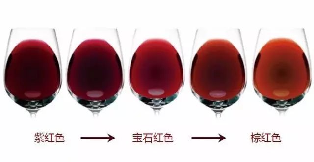 红酒在陈年的过程中,因为红色素减少而颜色逐渐转淡,由紫红色调变成褐红和橘红色,到了老年期经常只剩下淡淡的砖红色。