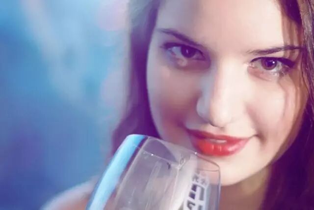 杯中酒映出女人泛红的面容,最是让人心神荡漾。