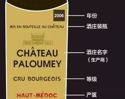 第一点,我们可以从瓶身也就是酒标上面获得很多信息,比如说年份,生产商,等级 ,产区,酒精度,品种等。虽然上面都是外国字,但是他们的排版都是一样的,只要记住了他们的位置,别人问的时候,也不会显得你一无所知!