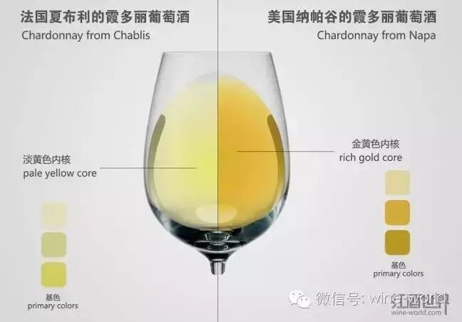 观察白葡萄酒的颜色,我们可以获知酒龄、葡萄品种以及产地等信息。但是,白葡萄酒的自身特点也决定了其与红葡萄酒的不同。