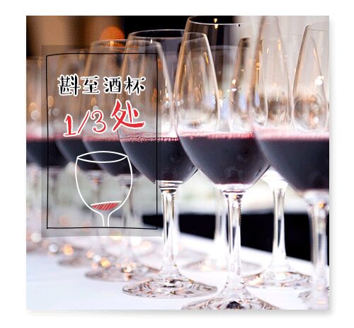 标准一杯葡萄酒为150ml,不过,由于酒杯的形状、容量不同,将红葡萄酒入杯约1/3即可。