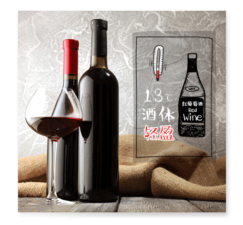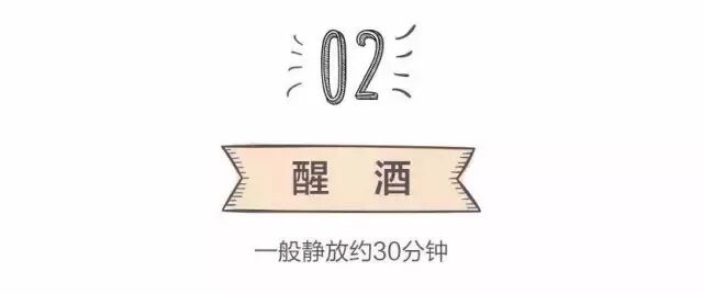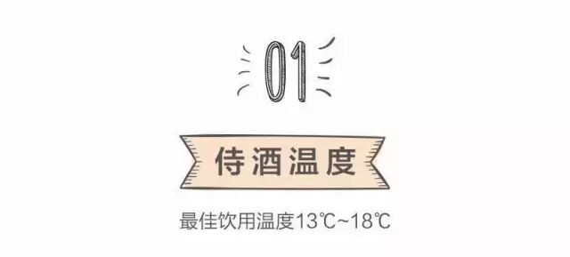 将葡萄酒放置到指定温度。酒体轻盈、果味浓郁的红葡萄酒为13℃;中等酒体为16℃左右;酒体醇厚的红葡萄酒为17-18℃。> 18℃ 足以让大多数红酒的风味尽失。