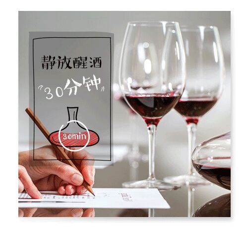 进行醒酒之前,应先让酒瓶保持直立,开瓶后倒入醒酒器中静放,醒酒时间从半小时(30分钟)到3小时不等。一是让其与空气接触,以增加酒香去除异味。二是让因倒置放酒而产生的木屑沉到底部。