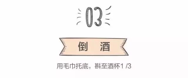 正确倒酒方法是让酒标的正面朝上,一手托酒,一手控制酒瓶底部,托酒瓶的手上要垫一块毛巾,以免手的温度影响酒温,切忌倒酒时晃动酒瓶,以免瓶底的木屑倒入酒杯。