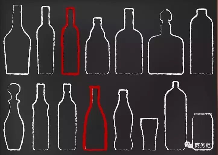 △当然也会有同样形状酒瓶,装不同酒种的情况,毕竟瓶子就那么几种O.O