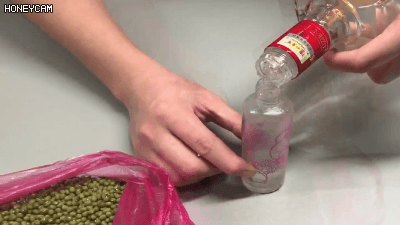家里的绿豆有时候会生虫或者变坏,这个时候可以往袋子里喷洒一点白酒,然后摇晃均匀,就能长久的保存啦!