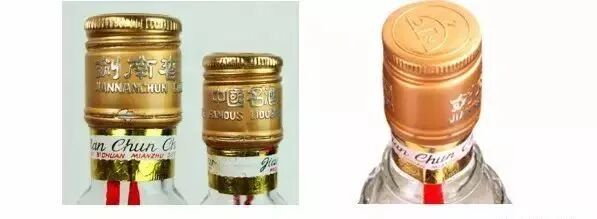 有些瓶盖不仅做工粗糙,表面有被腐蚀的一种颗粒感(左假右真)