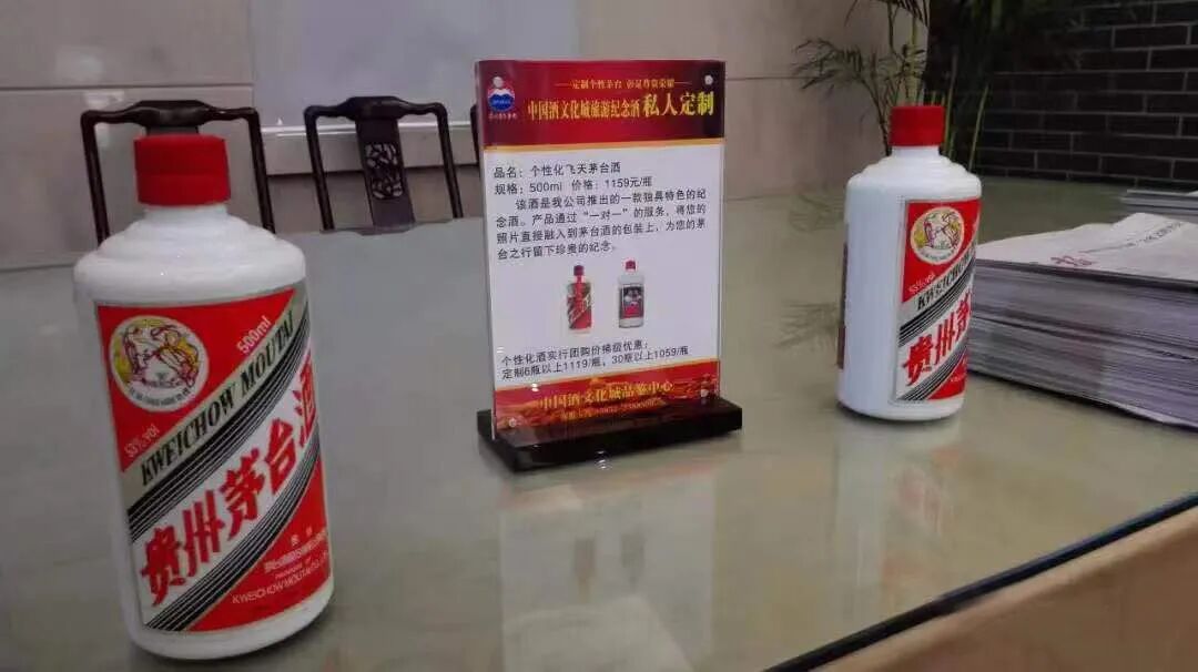 2015年2月,茅台酒厂“中国酒文化城”提供个性化定制飞天茅台酒服务,每瓶价格为1159元。(刘虎 摄)