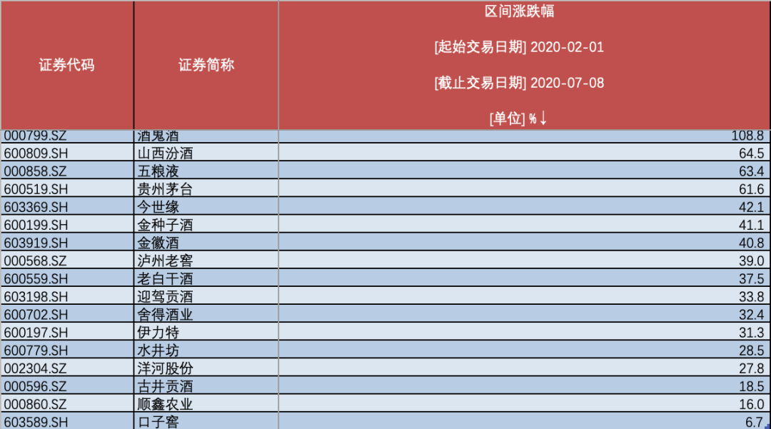 白酒是典型的龙头借助疫情加快份额提升的板块,因此,对于白酒这样长期竞争格局稳定,现金流及盈利能力保持良好,具备非常良好商业模式和稀缺性的行业,无论是从短期需求改善还是从中长期供给集中,白酒龙头经营依旧更加稳健,应对疫情更从容,中长期我们要以内在真实价值为锚,布局价值龙头长期持有,那么短期我们也就在今年非常特殊的上半年可以收获到良好的股价回报。