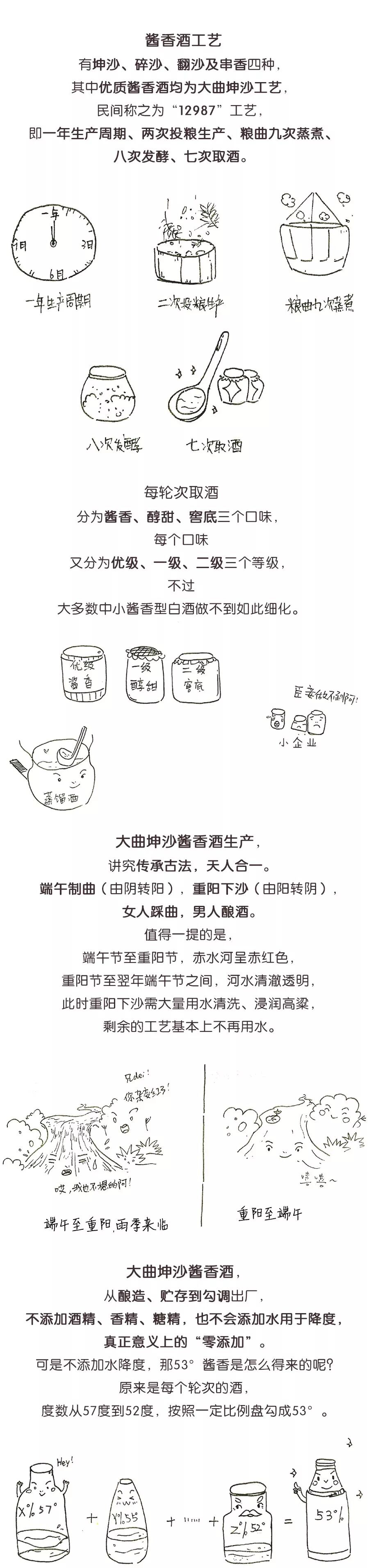 优质酱香酒蒸馏时的接酒温度高达40℃以上,能最大限度地排除如醛类及硫化物等有害物质。酱香酒中易挥发物质相对较少,不易挥发物质相对较多,对人的刺激小,所以饮后不上头、不辣喉、不“烧心”.