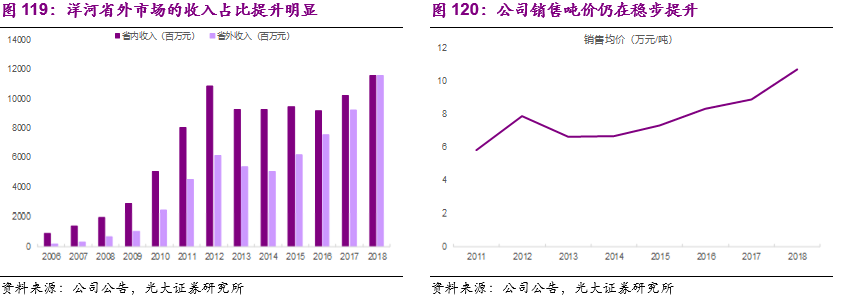 (1)蓝色经典业务,省内市场结构升级明显,虽然海之蓝和天之蓝增速放缓,但是梦之蓝预计有望持续保持20%以上的增长,同时省外市场扩张稳步推进,省外市场的收入占比有望继续提升,我们预测公司2019/2020/2021年收入增速分别为14.34%/12.95%/10.92%。