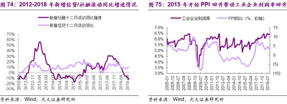 2016-2017年的宏观背景基本特征:供给侧改革推动工业企业利润改善明显。2015年底开启的“三去一降一补”(即:去产能、去库存、去杠杆,降成本、补短板)成为2016-2017年宏观经济运行的主要特征。货币政策的工作重心在督促金融部门的杠杆去化和调降实体融资成本,2016年开始的新增信贷收缩一直持续至2017年二季度,银行间资金成本的上升从2016年三季度迅速提升上升。在地产和制造业投资增速惯性下滑的背景下,基建和财政托底经济增长。供给侧改革成效显著,工业企业产能利用率大幅回升,PPI强劲反弹推动工业企业利润率甚至恢复至2005以来的最好水平。