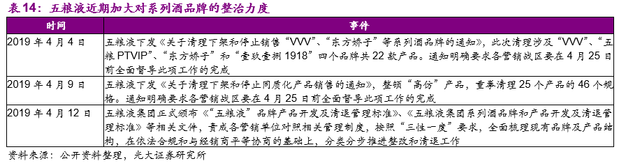 产品升级换代+渠道体系改革,2019年五粮液大胆破局:2012-15年白酒行业第三次调整期五粮液错误的价格策略不仅极大的挫伤了渠道的积极性,也对五粮液的品牌力造成负面影响。2013年2月五粮液将普五的出厂价提高10%至725元,虽然此后公司采用提高经销商补贴比例、开发低度产品等一系列措施来保证经销商盈利,但是倒挂的渠道价格大幅伤害了经销商的积极性。此后2014年5月五粮液将普五的出厂价从725元下调至609元,经过此次一年左右时间内的价格先上调后下调,五粮液的品牌力被严重损害。2016年白酒行业见底复苏之后,五粮液与茅台的品牌影响力逐渐拉开,渠道积极性一直是制约五粮液发展的核心问题之一。