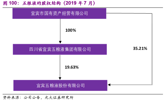 股权结构:五粮液的控股股东为宜宾市国有资产经营有限公司,通过直接持有上市公司股权和全资子公司四川省宜宾五粮液集团有限公司间接持有上市公司股权,合计持有占总股本54.84%的股权。同时五粮液于2018年通过定向增发的方式完成了核心管理层及经销商代表的持股,其中定增参与方国泰君安资管计划由五粮液第1期员工持股计划出资,君享五粮液 1 号资金来源为为五粮液部分优秀经销商及其相关人员共 23 名。定增完成后,五粮液第1期员工持股计划和君享五粮液 1 号分别持有占总股本0.61%和0.5%的股权。