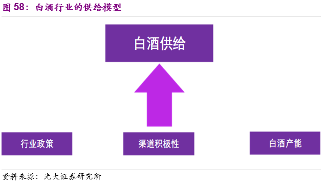供给端:宏观政策、中观渠道推力及微观企业产能限制是决定白酒供给端的几大核心因素。虽然白酒需求端的研究相对重要于供给,但是纵观行业发展史,白酒行业相较于其他消费品更容易受到政策等一系列因素的影响。