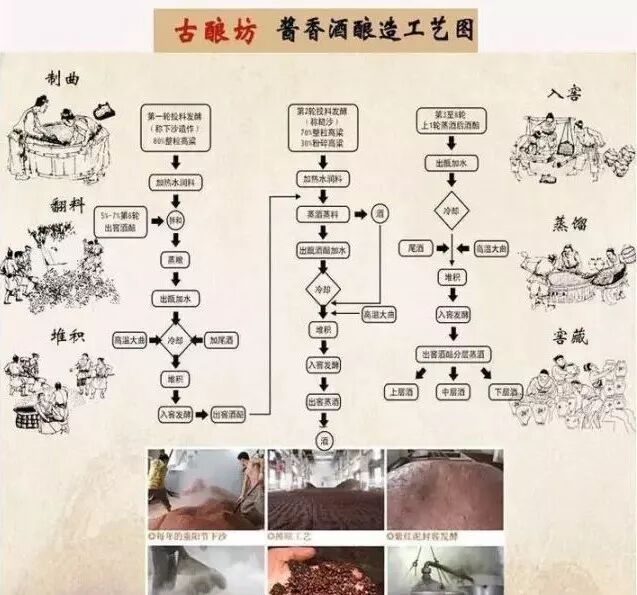 固态酿酒,生产工艺简直复杂。从原料处理-泡粮-初蒸-闷水-复蒸-摊凉-下曲培菌-发酵-蒸馏到勾调、贮存、出酒,中间的硬件成本和人力成本非常高,酒厂酿造规程不同,成本还不一样。甚至很多酒厂在酿酒过程中还需要多次回沙、反复蒸馏。