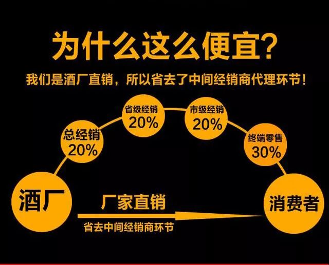 国内酒水市场价格不透明,现在有很多无良商家打着茅台酱香酒的幌子进行炒作,什么发霉老酒、9块9包邮的酒无奇不有,大多数酱香酒从厂家到消费者手中,每一层中间商都是一重暴利,把每个环节的盈利都转嫁到消费者身上。