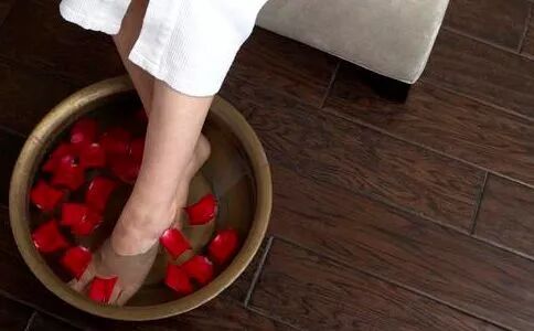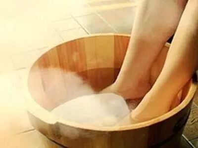 3.在半盆热水中加少许白酒泡脚15分钟。